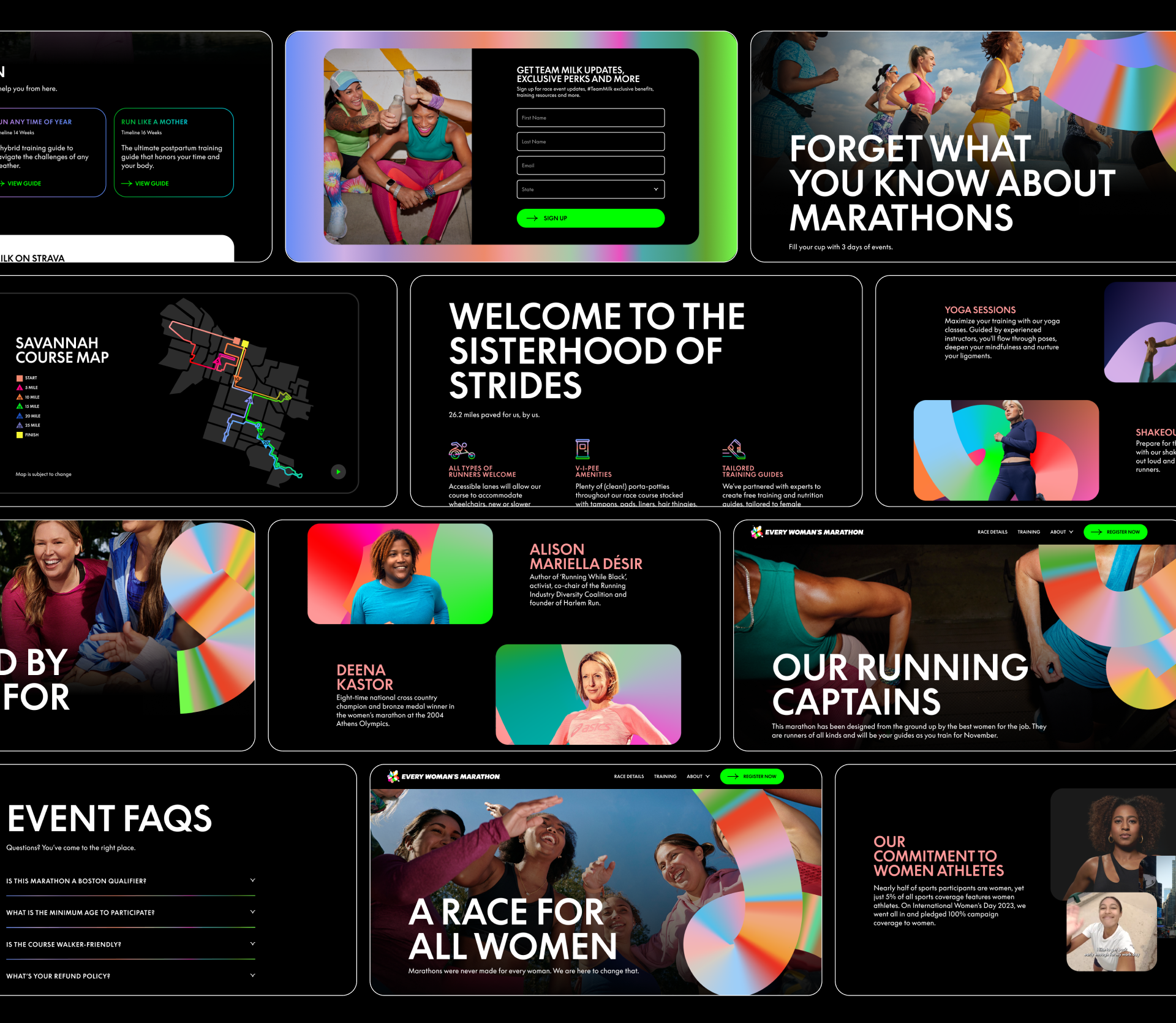 GALE’s work for MilkPEP has always championed female athletes, so instead of simply sponsoring a race, we decided to create our own. Every Woman's Marathon, the first marathon created by women for women, powered by 26.2 Team Milk, premiered in Savannah, Georgia, on November 16, 2024.
